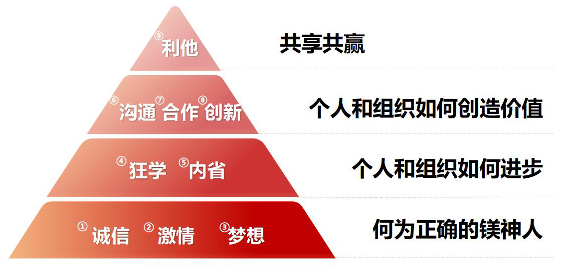 鎂神科技以創辦實業,發展經濟,造福一方,共同富裕為初心;秉承著為全球用戶提供更適合的氧化鎂,為人類健康、科技創新、可持續發展作出貢獻的使命;有著創建百年鎂神平臺,讓客戶、員工、股東共同發展、共同快樂、共同富裕的美好愿景;培育出拼搏、堅韌、越挫越勇的鎂神人。鎂神人用誠信、激情、夢想、狂學、內省、溝通、合作、創新、利他的價值觀向客戶、社會各界朋友詮釋著鎂神的企業文化!
